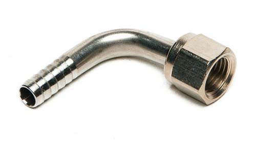 stainless steel 90 deg Swivel Elbow 1/4" FFL x 1/4 Barb or 3/8 Barb to connect on a ball lock disconnect.