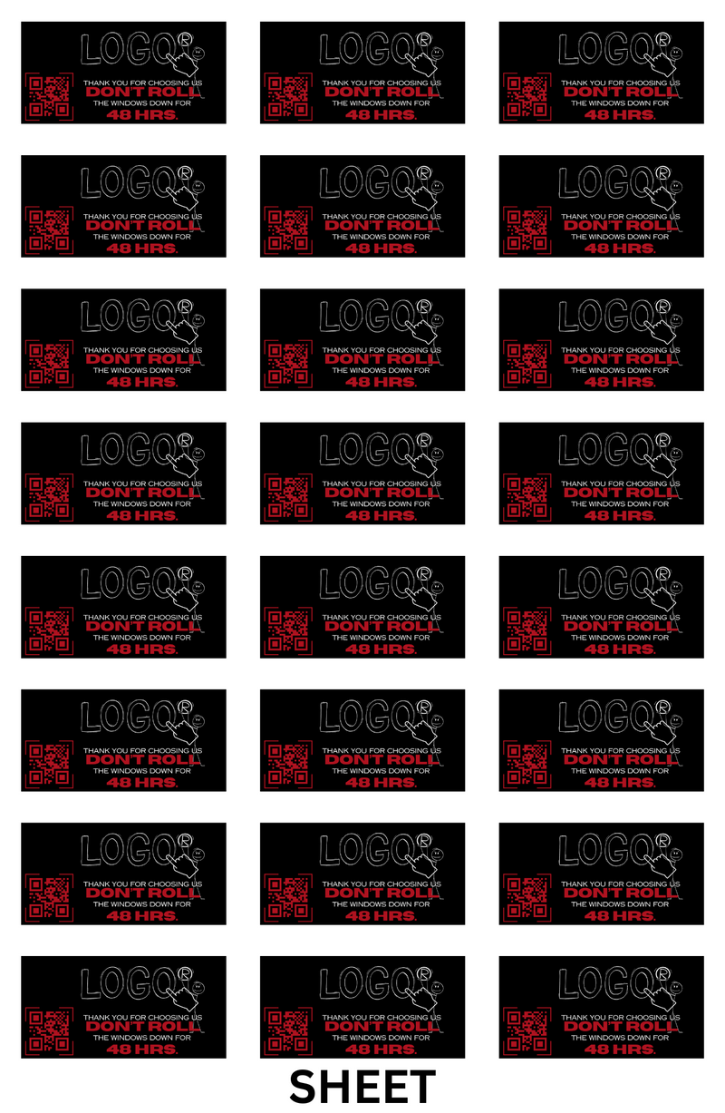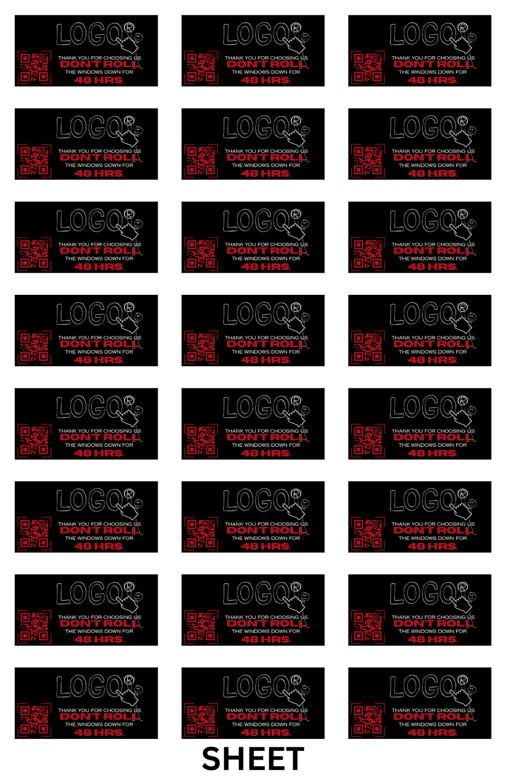 After window tinting, ensure your customers are informed with our specialized stickers. Designed to remind individuals not to roll down their windows immediately after tinting, these stickers serve as a crucial safety precaution.
